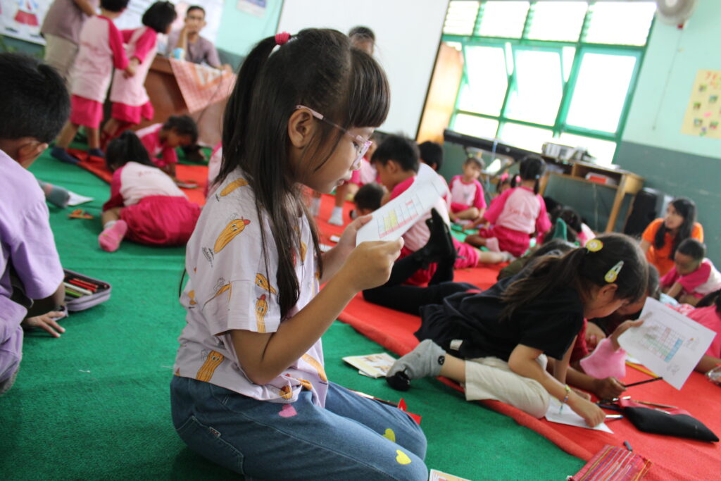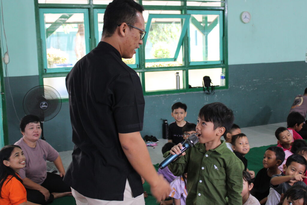 Berbagai kegiatan menarik digelar sepanjang hari, mulai dari pembinaan karakter bersama RD Pius Adityo, permainan dan ice breaking yang penuh keceriaan, hingga sesi edukatif bertema “Makanan Sehat untuk Kecerdasan” bersama Suster dari RS Maria Regina. Anak-anak juga diajak aktif dan kreatif melalui kegiatan mencari kata ajaib pada puzzle serta mewarnai gambar.